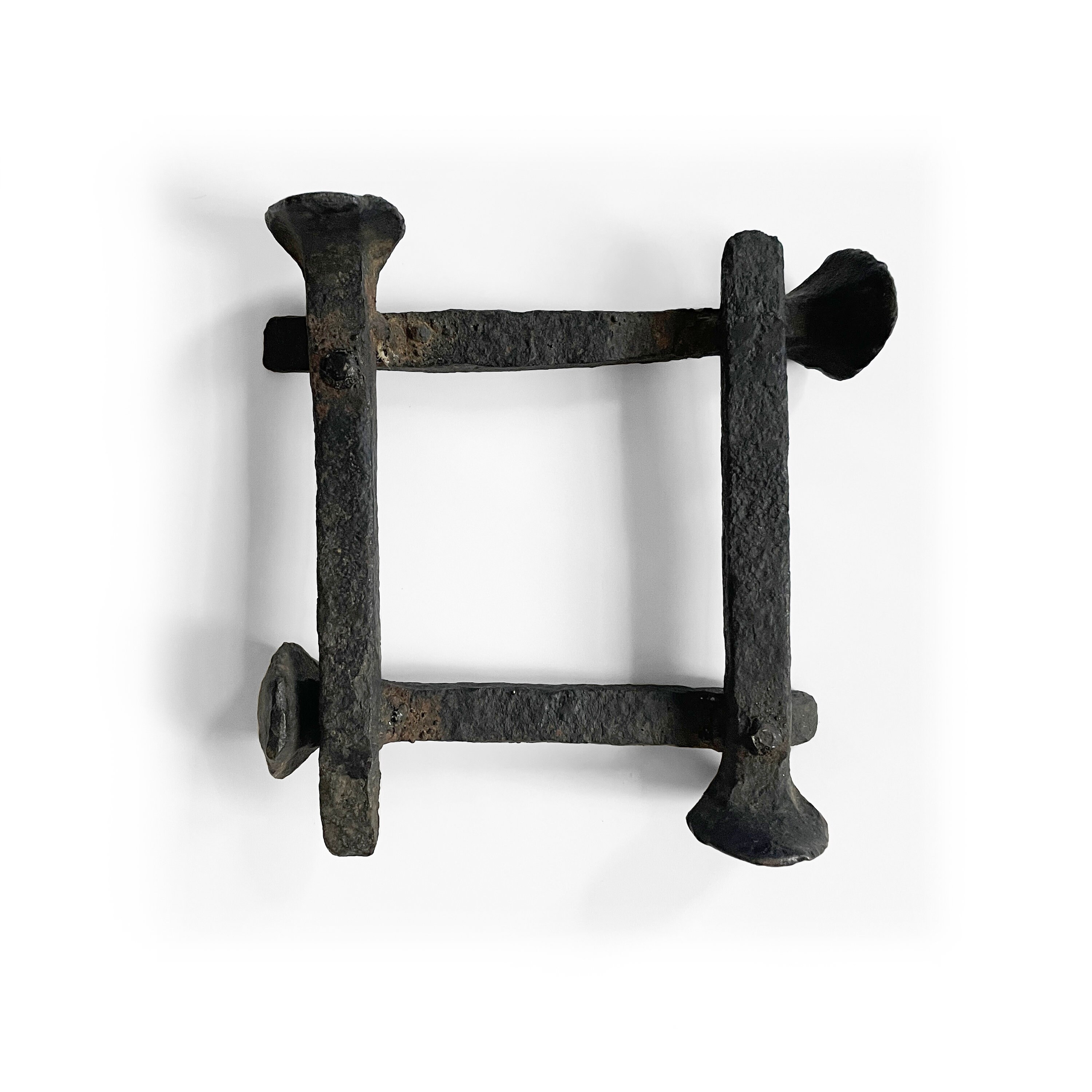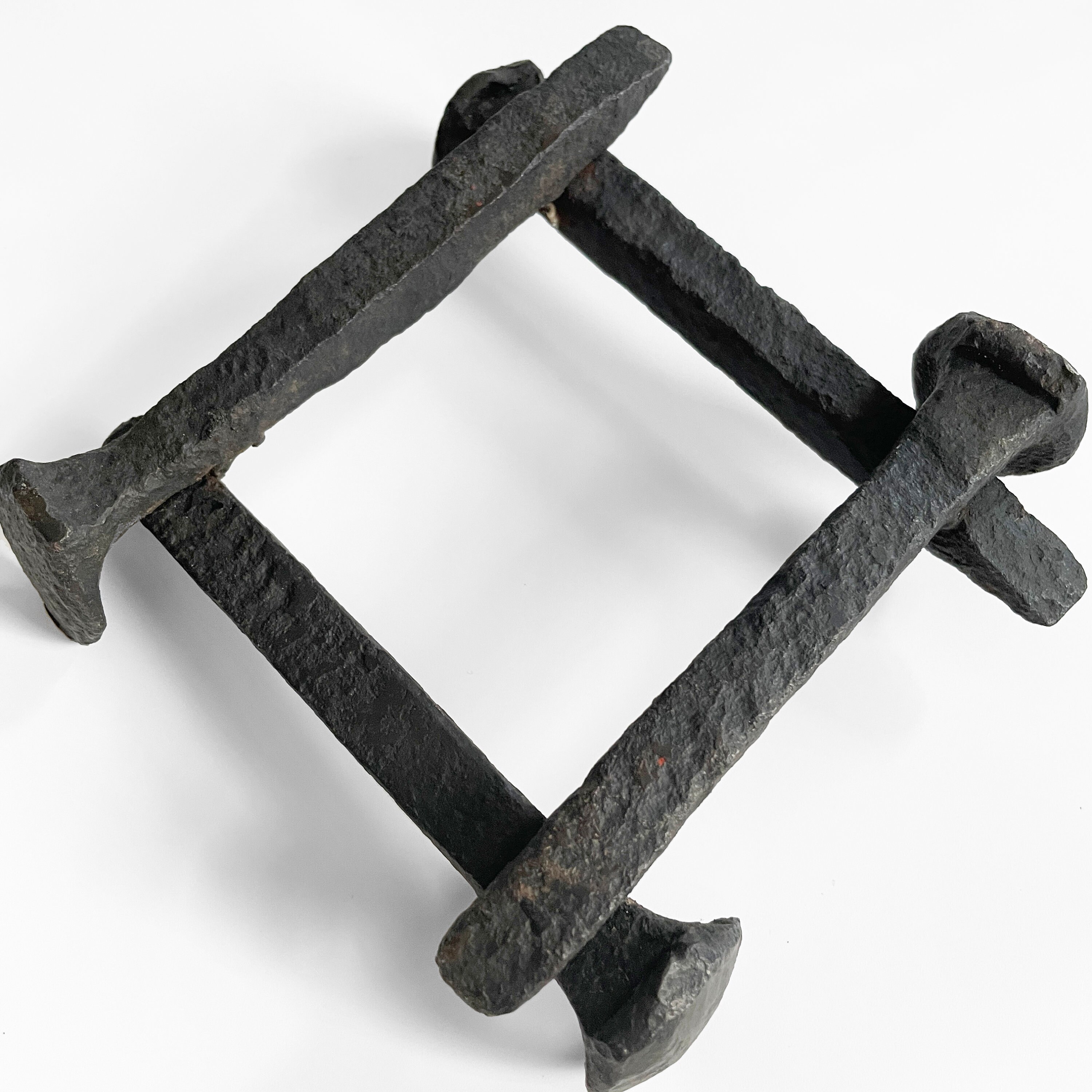 Arts and Crafts trivit constructed from welded railroad spikes. 6 x 6 x 2 inches