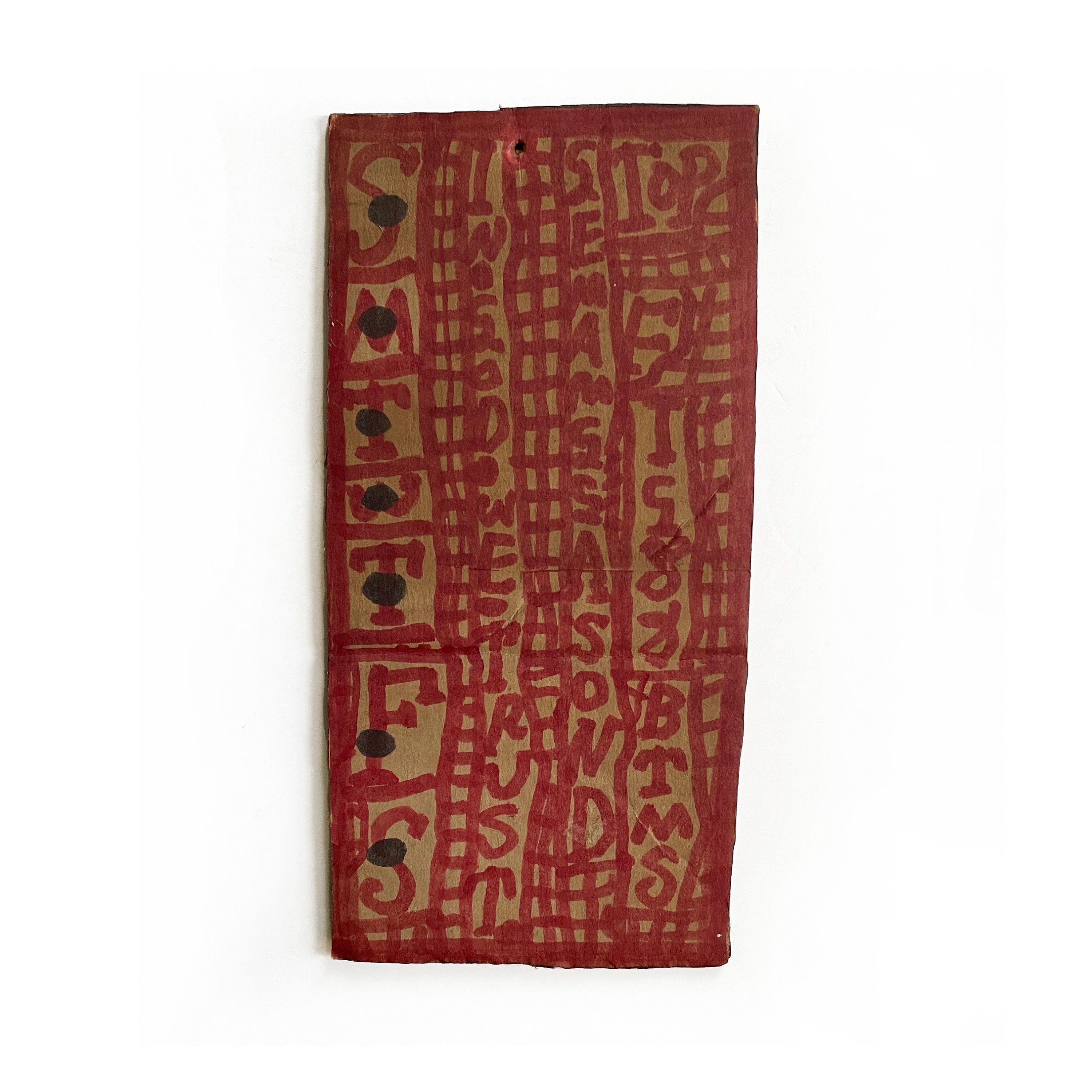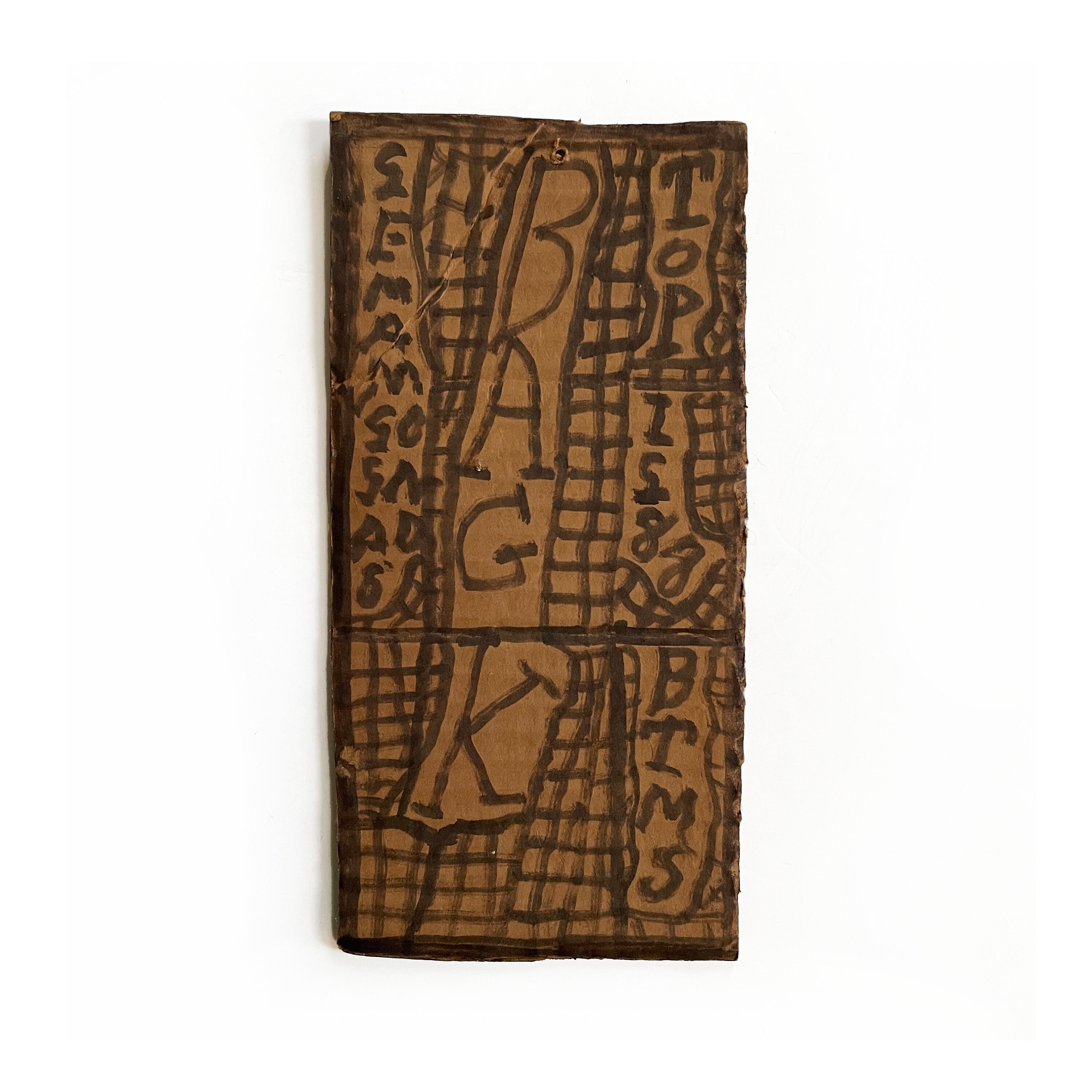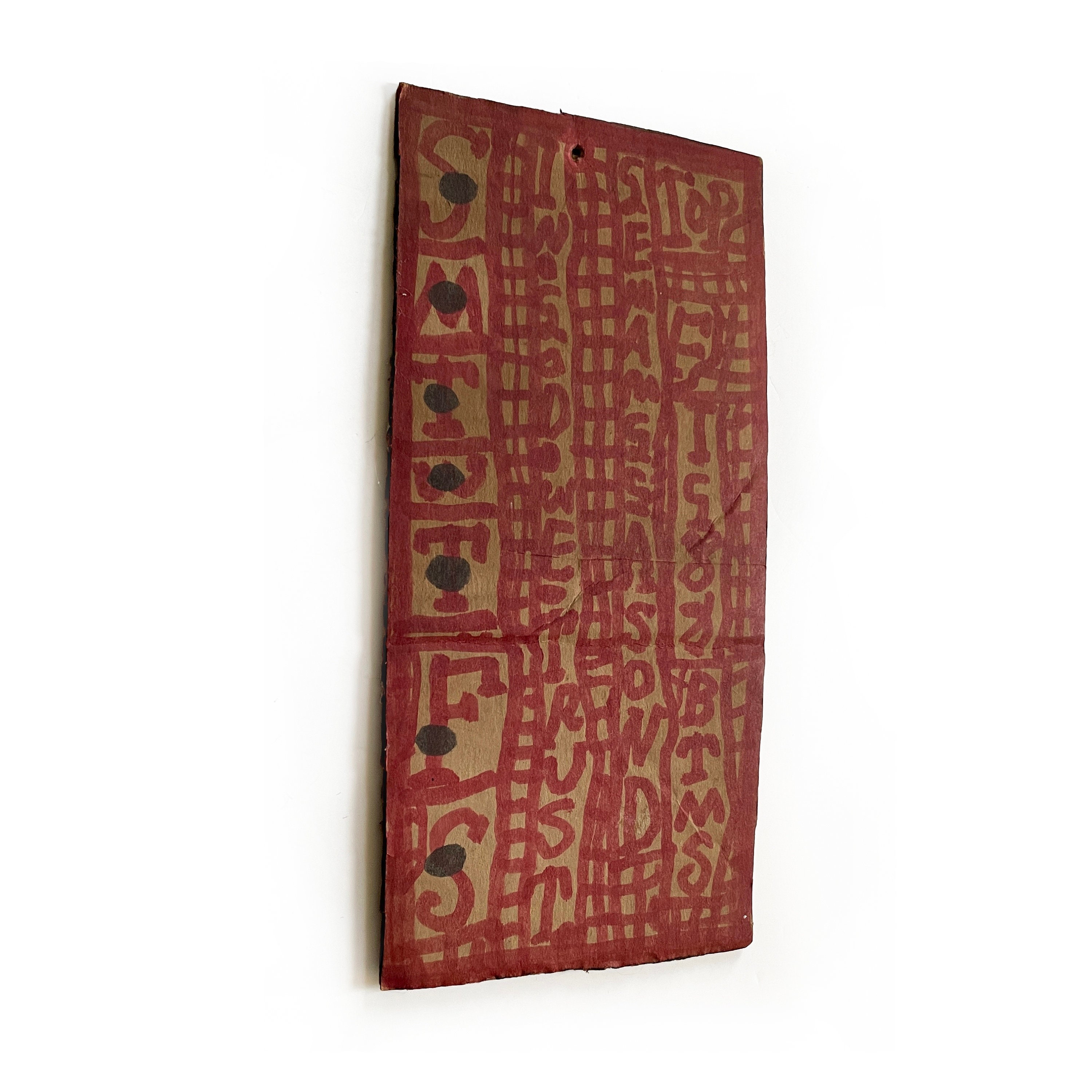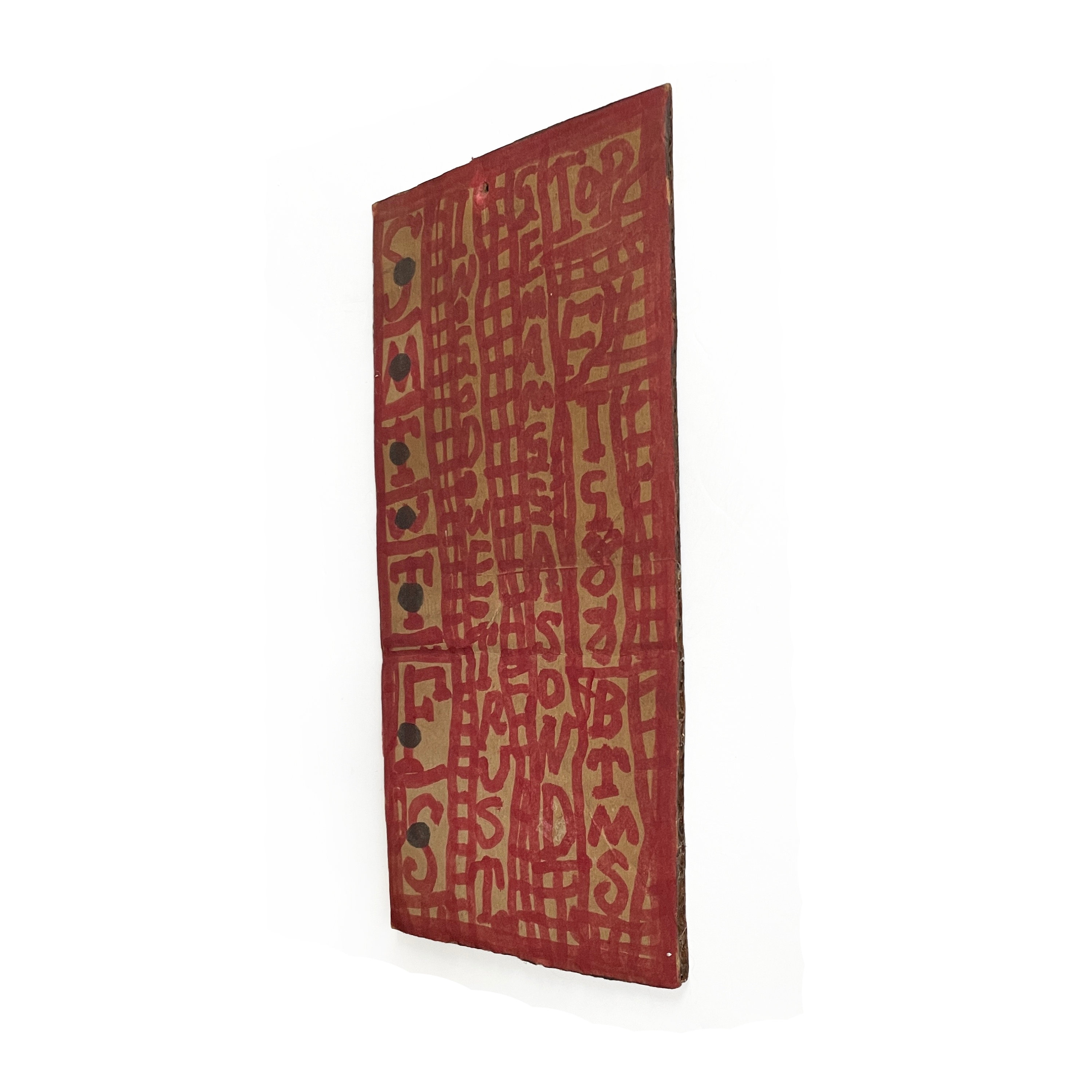 Z.B. Armstrong "Doomsday Clock," Marker on cardboard, 9 x 4.5 inches. This work is double sided with the front in red maker and the back in black marker.