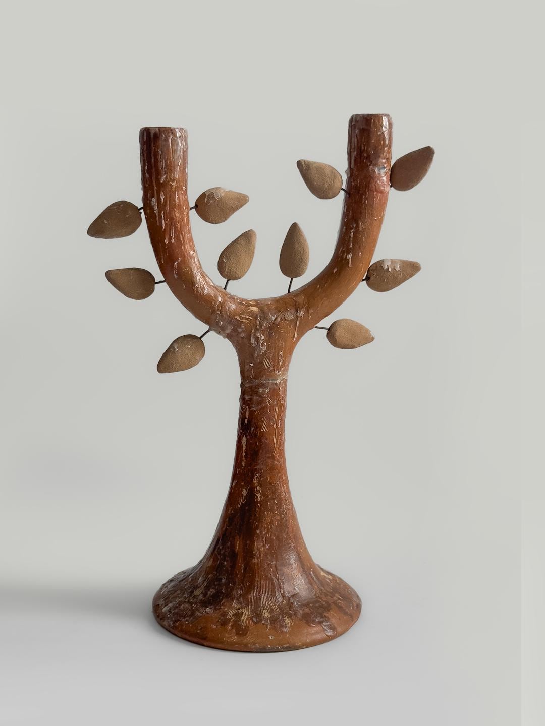 Both sculptural and functional, this candelabra reflects the enduring tradition of Mexican ceramic artistry—celebrating faith, nature, and community through form and fire.