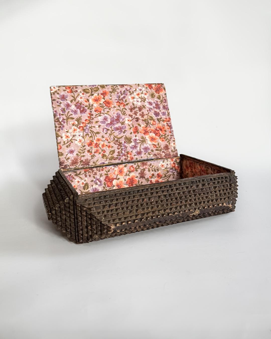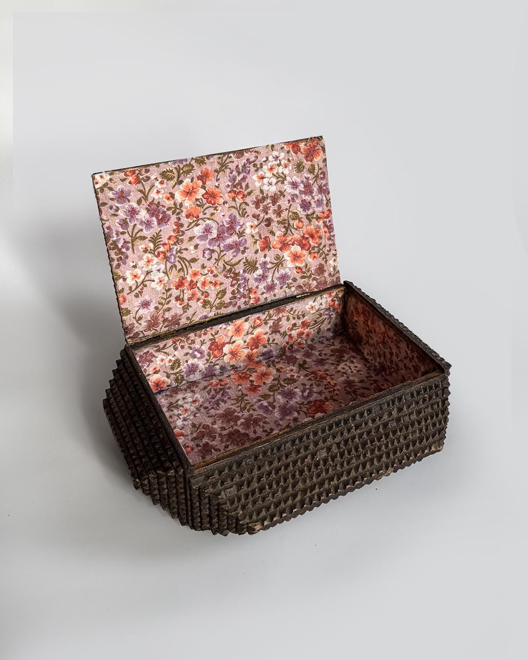 Tramp art was popular from roughly the 1870s through the 1940s. No one knows for sure how the practice got started, but the materials used to make it, especially wooden cigar boxes, had become standard around the 1850s. Cigar smoking was very popular at the time, and by law, the boxes couldn't be reused by cigar manufacturers, so there were plenty of them around. The people who made tramp art weren't trained artists. They taught themselves how to chip the wood and assemble objects. Some sources suggest that tramp art was made by itinerant workers and tradesmen, which means they traveled from place to place selling goods and services. But not all tramp art was made by wanderers or people without permanent homes. It took time and patience to assemble tramp art objects.