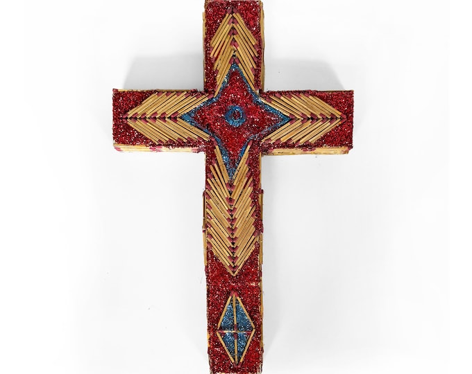 Outsider Art Johnny Tolliver Matchstick Cross with Glitter